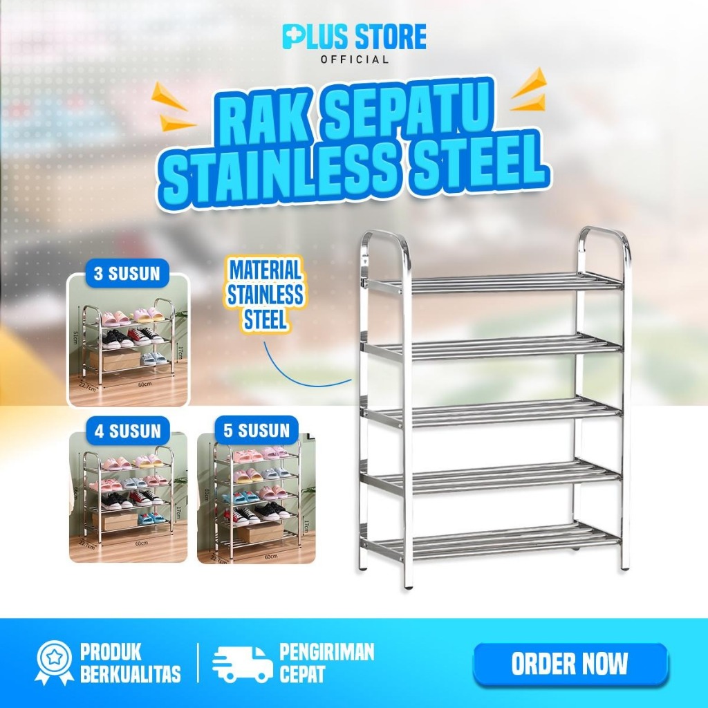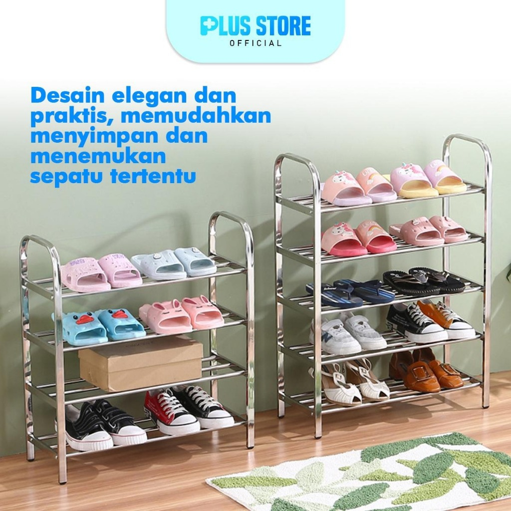 Rak Sepatu Stainless Steel Multifungsi/ Tempat Sepatu Sendal Besi 3,4,5 Susun Anti Karat Kuat dan Anti Slip / Rak Sepatu Serbaguna.