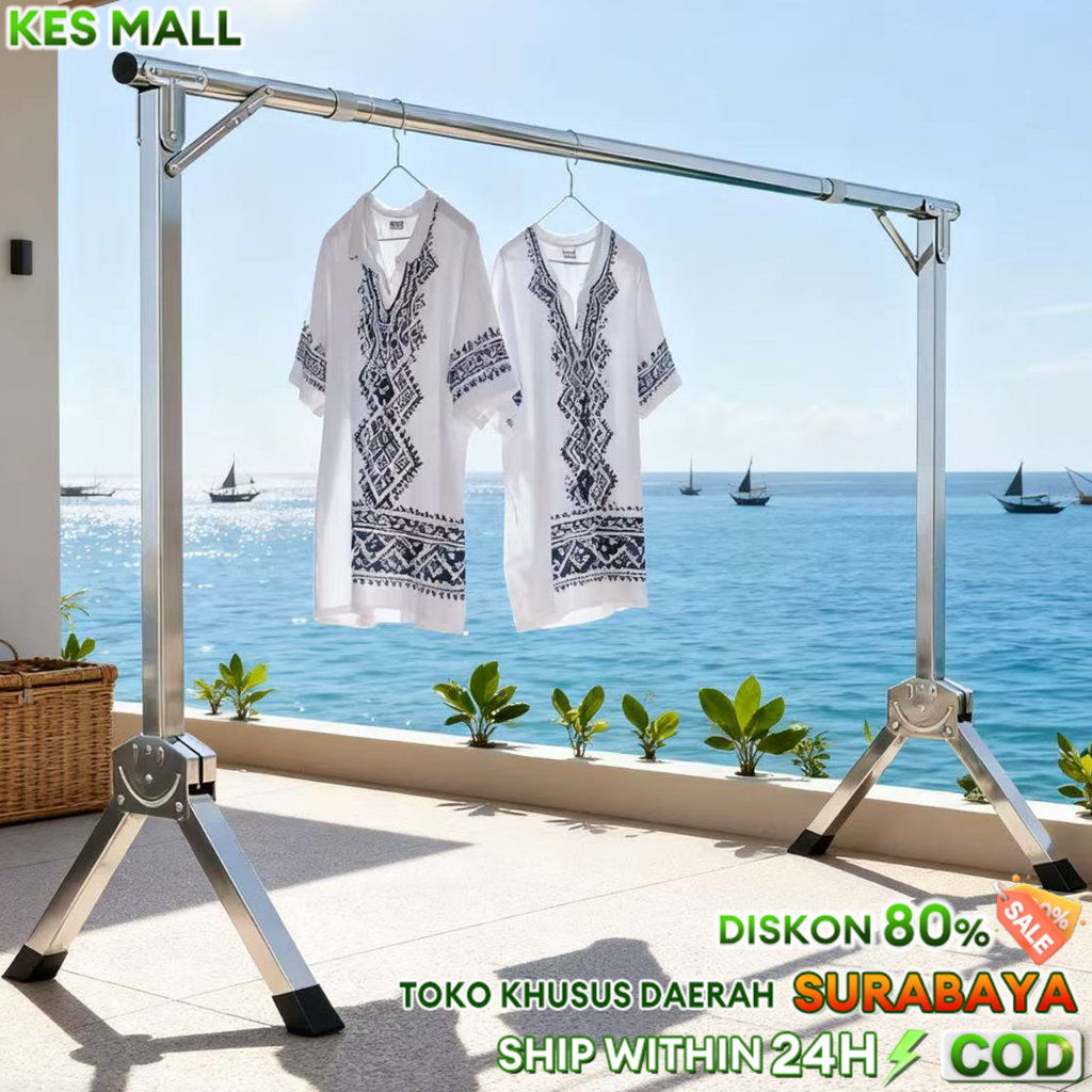 Jemuran Baju Lipat Anti Karat Single 304 Panjang Telescoping 160/200/240CM Dapat Dengan Roda