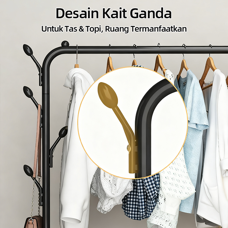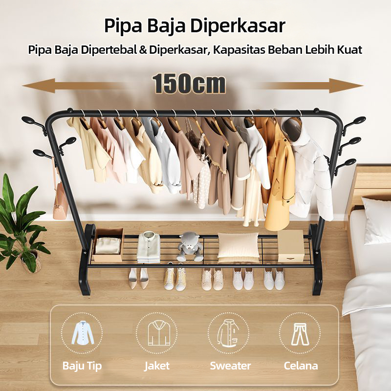 Sweet Life_Rak Jemuran Vertikal, Rak Gantung Baju Kokoh, Double Layer, Jemuran Serbaguna, Tidak Memakan Tempat