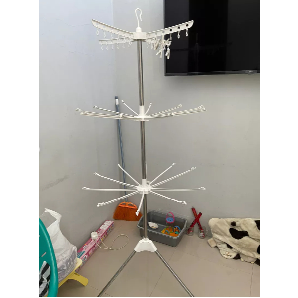 JEMURAN MENARA BAJU BAYI 3 SUSUN TRIPOD DENGAN HANGER ROTASI
