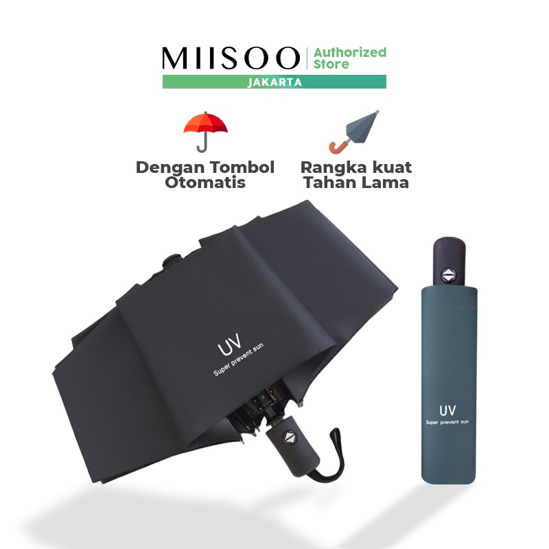 GRATIS ONGKIR MIISOO Payung Lipat Anti Uv Korea style Anti Hujan Panas Ultra violet Otomatis Protection motif polos Bulu