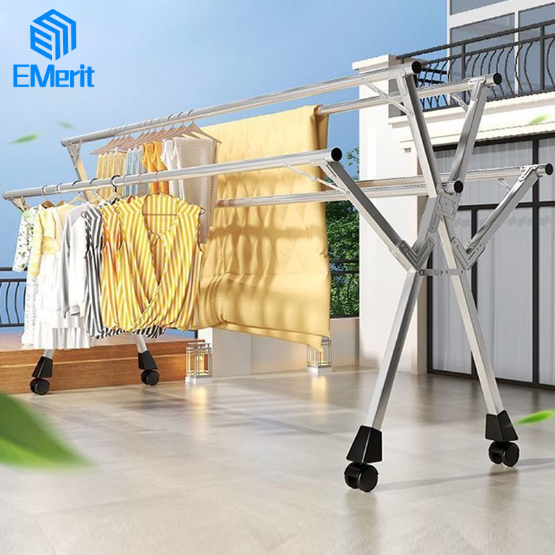 Jemuran Baju Lipat 5 Tiang Jemuran Baju Stainless Steel Jemuran Pakaian Kokoh Dan Dengan Roda Jemuran Hanger Anti Kara