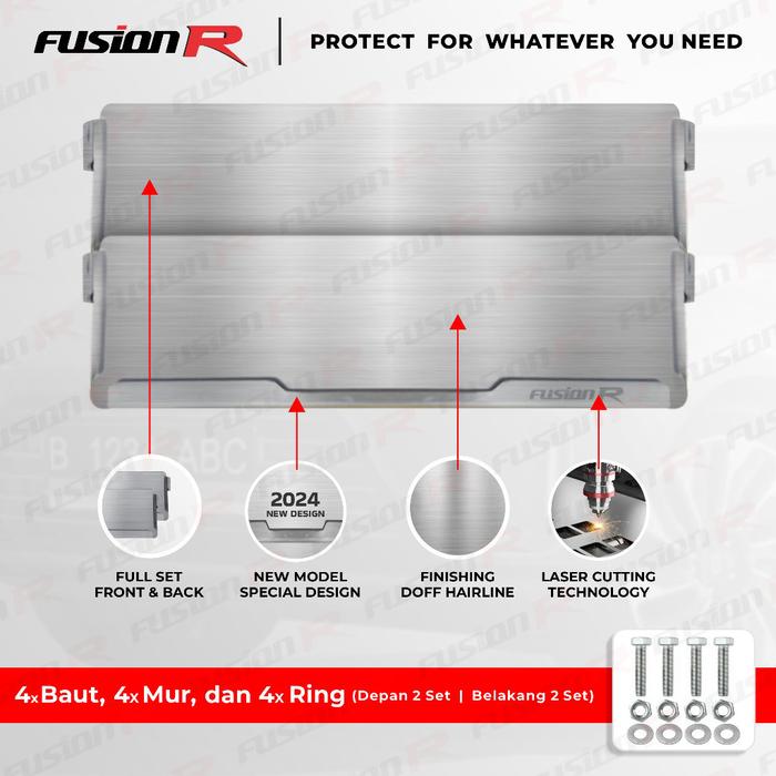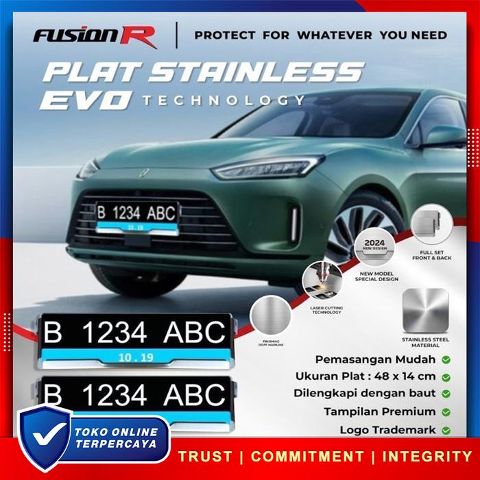 TEMPAT DUDUKAN TATAKAN COVER FRAME FUSION R TEMPAT PLAT NOMOR MOBIL STAINLESS STEEL PEJABAT ANTI KARAT SET - EVO