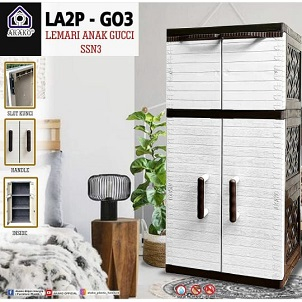 Lemari Pakaian Baju Plastik LA2P AKAKO Cermin Kaca 4 Susun MURAH PUTIH