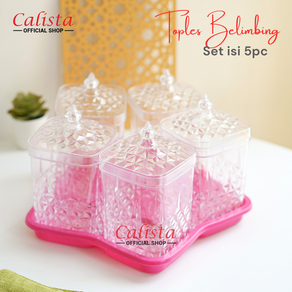 Toples Kristal Calista Belimbing 5 Pcs Set Toples Kue Lebaran Model Mewah 5 in 1