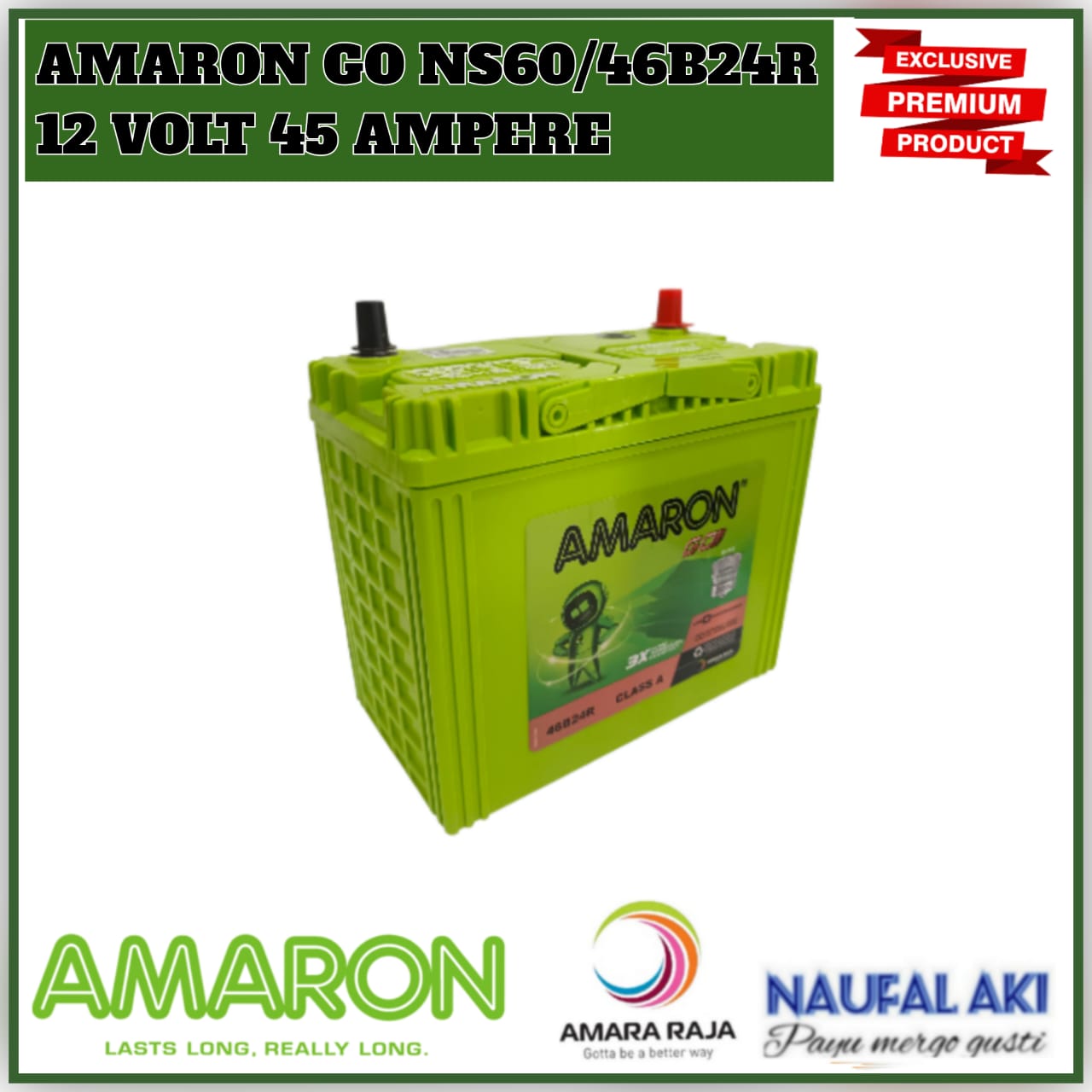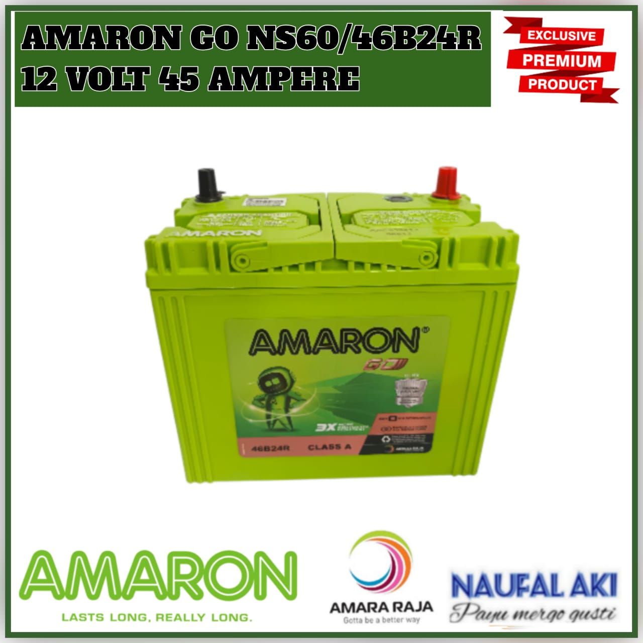 Aki Mobil Avanza/Rush/Feroza/Taruna/Terios/Xenia AMARON GO 46B24R/NS60 aki Kering 45 Ah Garansi 6 Bulan Original