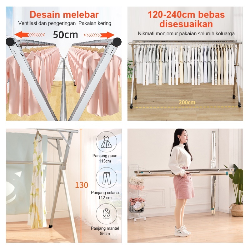 Jemuran stainless steel Jemuran baju lipat anti karat kuat Tempat jemuran baju Jemuran pakaian 240cm