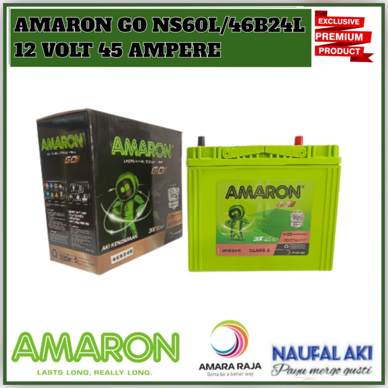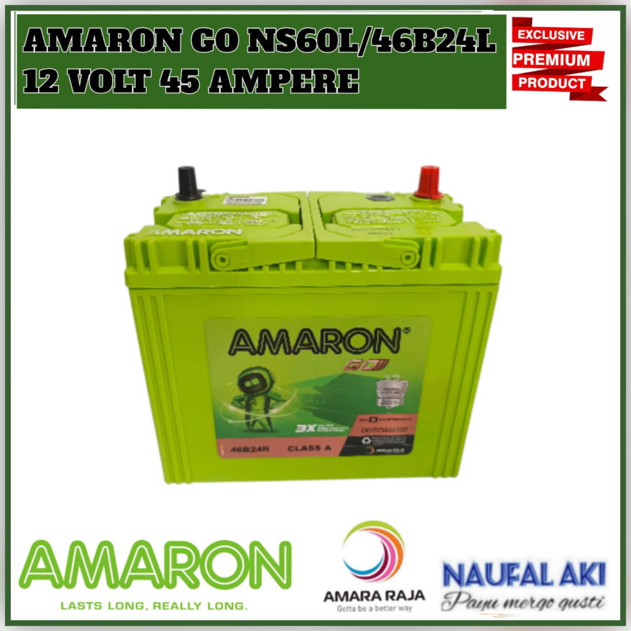 Aki Mobil Grand Livina/Corolla Series/Honda City/Karimun/Baleno AMARON GO 46B24L/NS60L MF 45 Ampere Original Garansi 6 B
