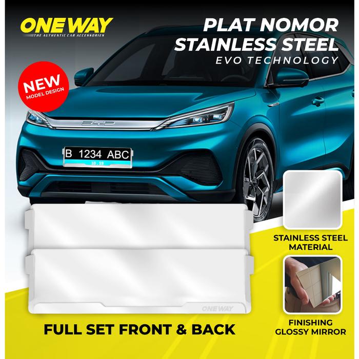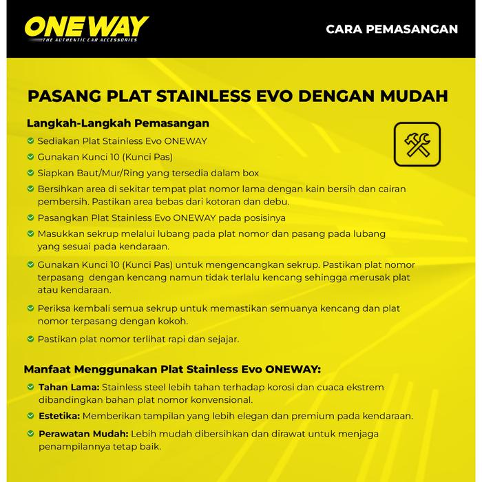 TEMPAT COVER FRAME ONEWAY TATAKAN DUDUKAN PLAT NOMOR MOBIL STAINLESS STEEL PEJABAT ANTI KARAT SET - EVO