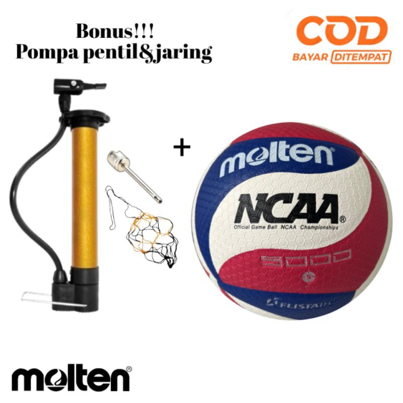 BOLA VOLLY MOLTEN NCAA 5000 WATER RESISTANT PRESS ORIGINAL GRATIS POMPA JARING