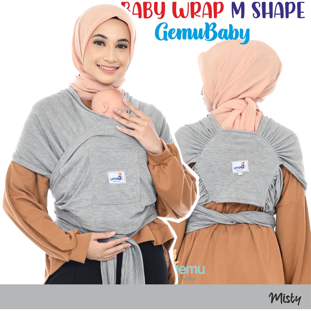 GEMUBABY Gendongan Bayi Depan M Shape Baby Wrap 3in1 Geos Baby Instan Premium with Sash Belt Warna Soft