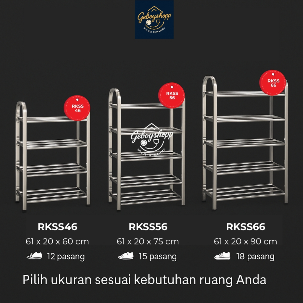 Rak Sepatu Stainless 4 / 5 / 6 Susun DNG – Anti Karat, Kokoh, Hemat Ruang, Harga Murah