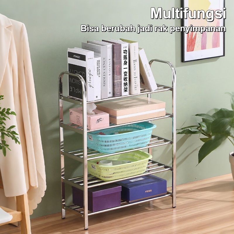 Superace Rak Stainless Steel Sepatu Tempat Sepatu Multifungsi 3/4/5 Susun Portable
