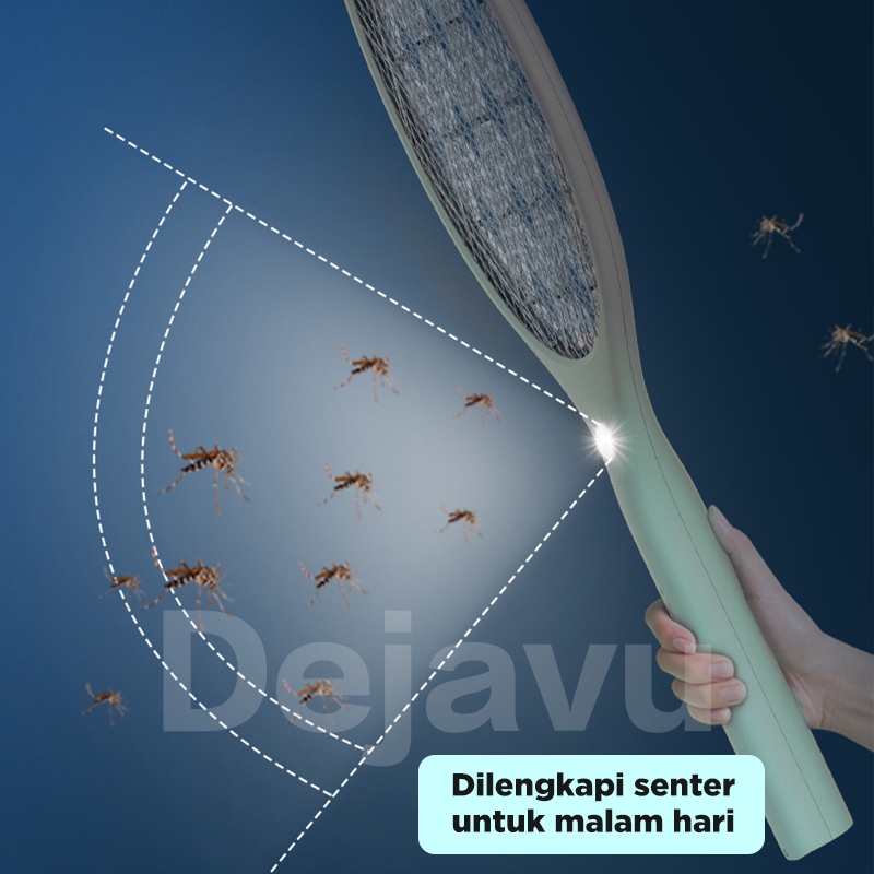 Raket Nyamuk Elektrik Dejavu HEG201 3in1 500mAh Ori Cas Tahan Lama Murah Awet Kabel Listrik Baterai Luby Starco Bolde