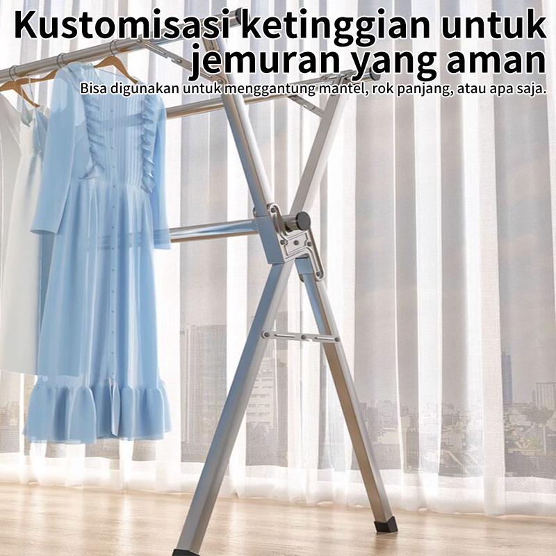 240CM Jemuran Baju Lipat Stainless Steel Jemuran Pakaian Anti Karat Kuat Jemuran Jemuran Baju Portable