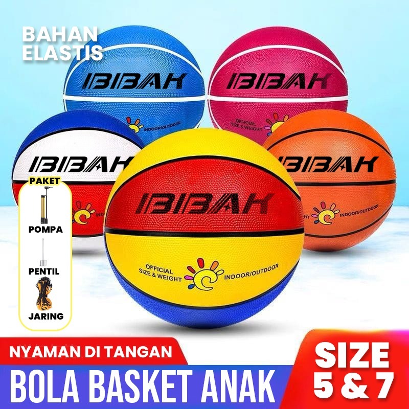 BBAK Bola Basket Anak Size 5 7 Bahan Karet XTRA POMPA JARING Cocok Untuk Latihan Basket Murid Sekolah