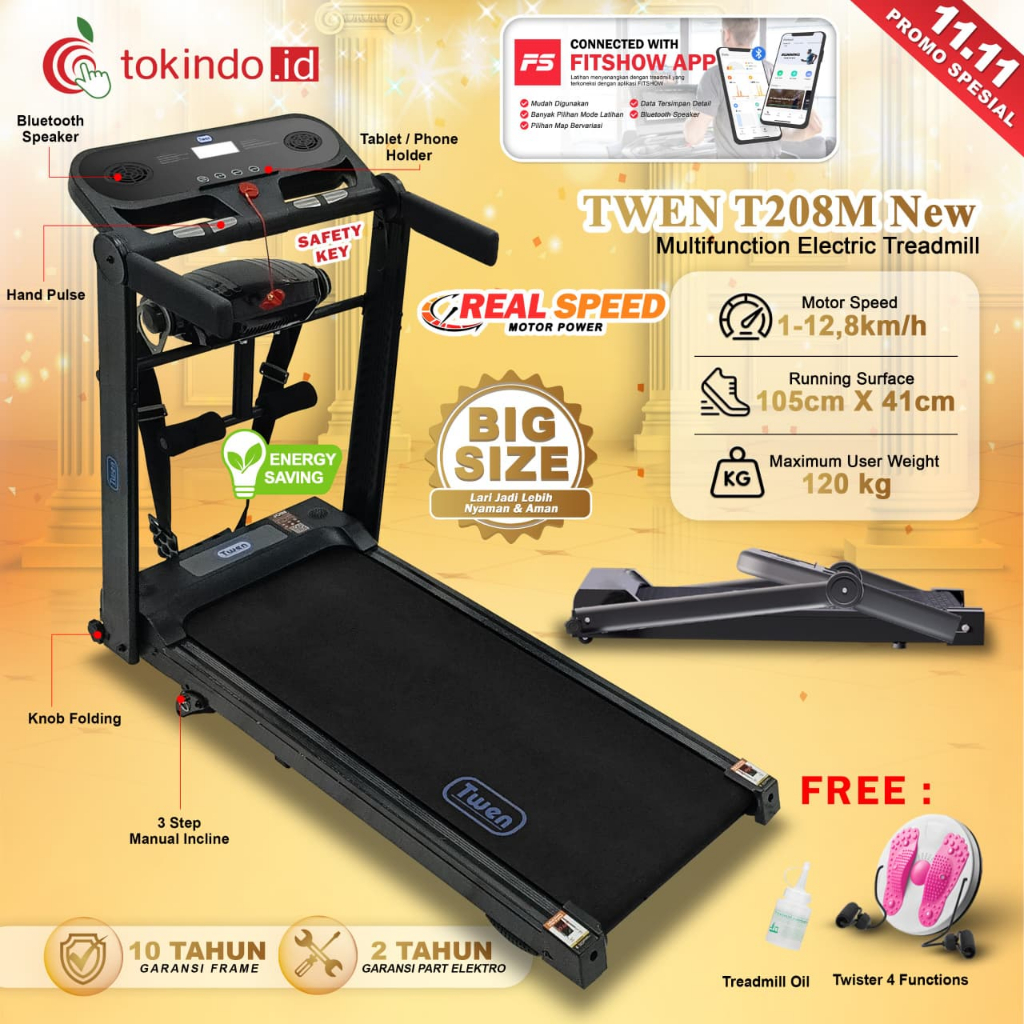 TWEN T205 New T208 New T205M New T208M New Treadmill Listrik Treadmill Portable Treadmill Multifungsi Treadmil Lipat Treadmill Electric Low Watt Alat Olahraga