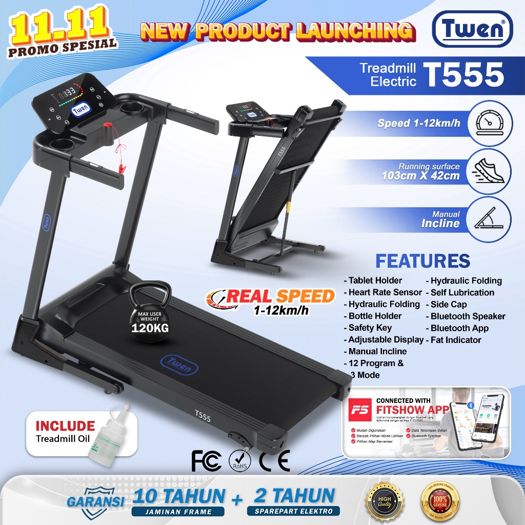 TWEN T555 T555M series Treadmill Listrik Treadmill Portable Treadmill Multifungsi Treadmil Lipat Treadmill Electric Low Watt Alat Olahraga