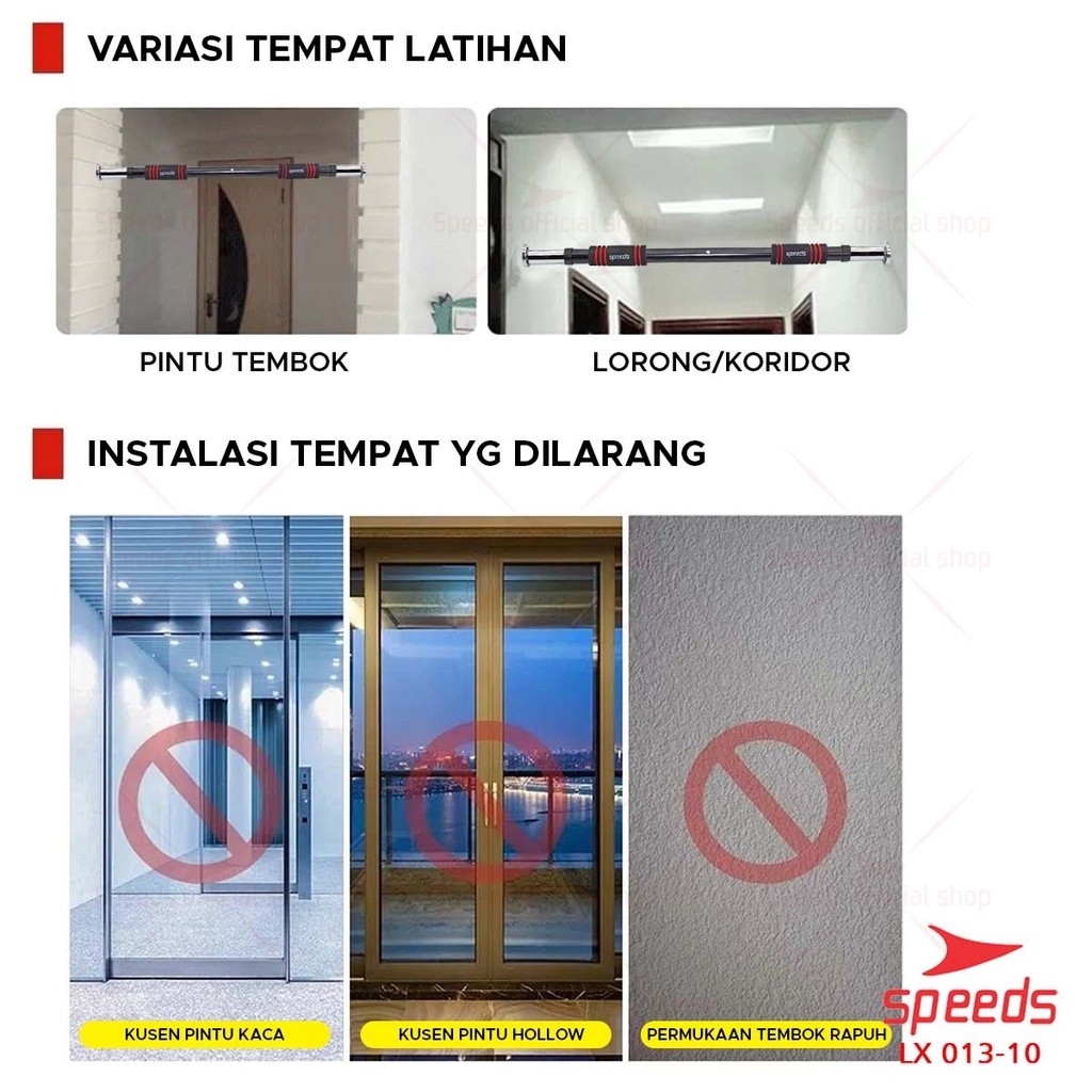 SPEEDS Pull Up Bar Door Bar Chin Up Bar Tiang Pull Up Alat Olahraga Pintu Gym Fitness 013-10