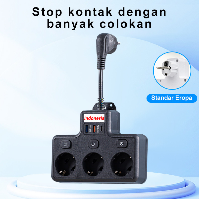 Multi Soket Colokan Listrik 3 Lubang Stop Kontak Usb Universal Stop Kontak 4 Lubang