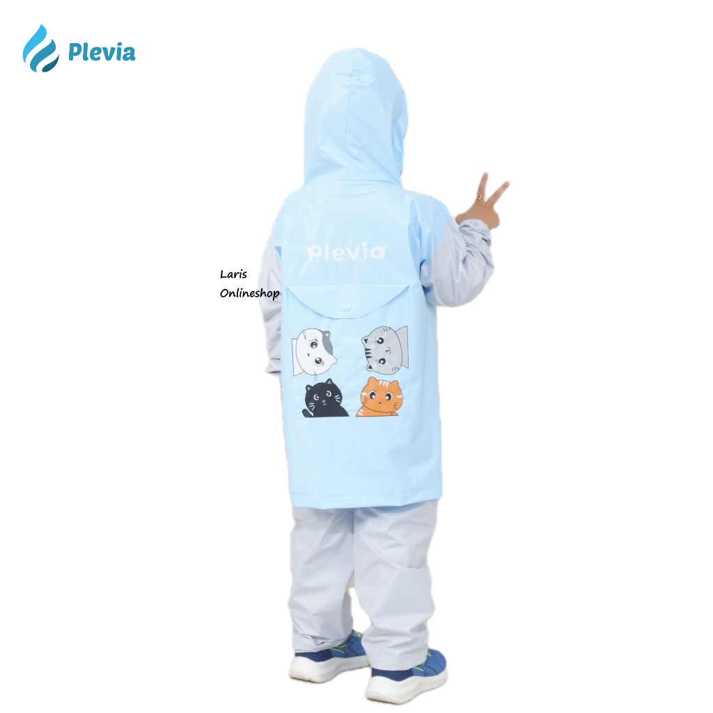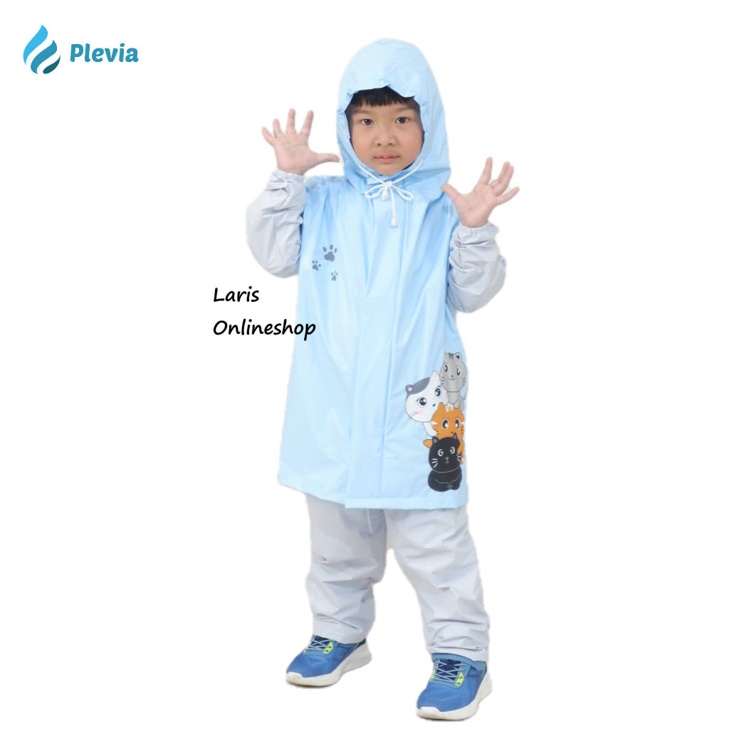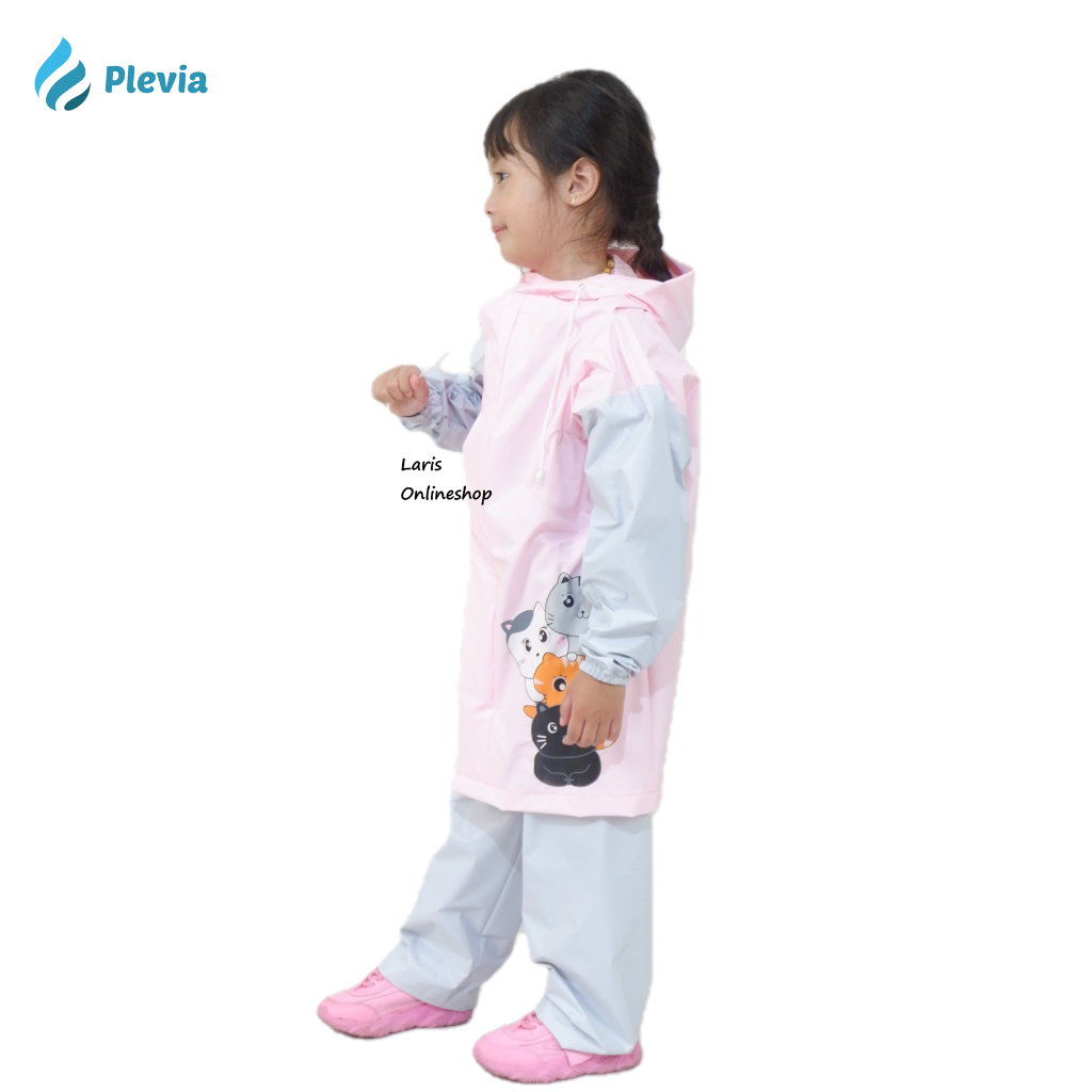 Jas Hujan Neko Junior / Jas Hujan Anak Jaket Celana Motif Neko Merek Plevia