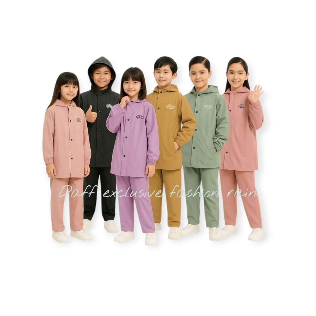 Jas Hujan Anak Setelan Jacket dan Celana Usia 7-13 Tahun Bahan Pvc Tebal Elastis Kuat Anti Rembes