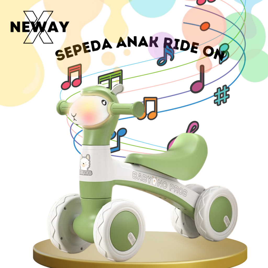 NewayX Sepeda Anak Ride On Mainan Keseimbangan Dorong Balance Bike Lampu Musik Roda Empat Toys