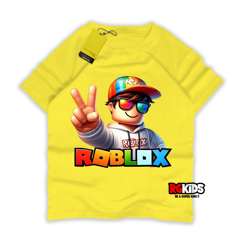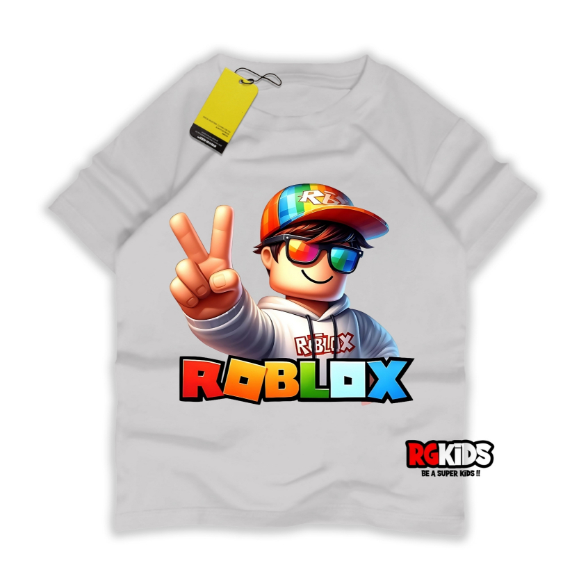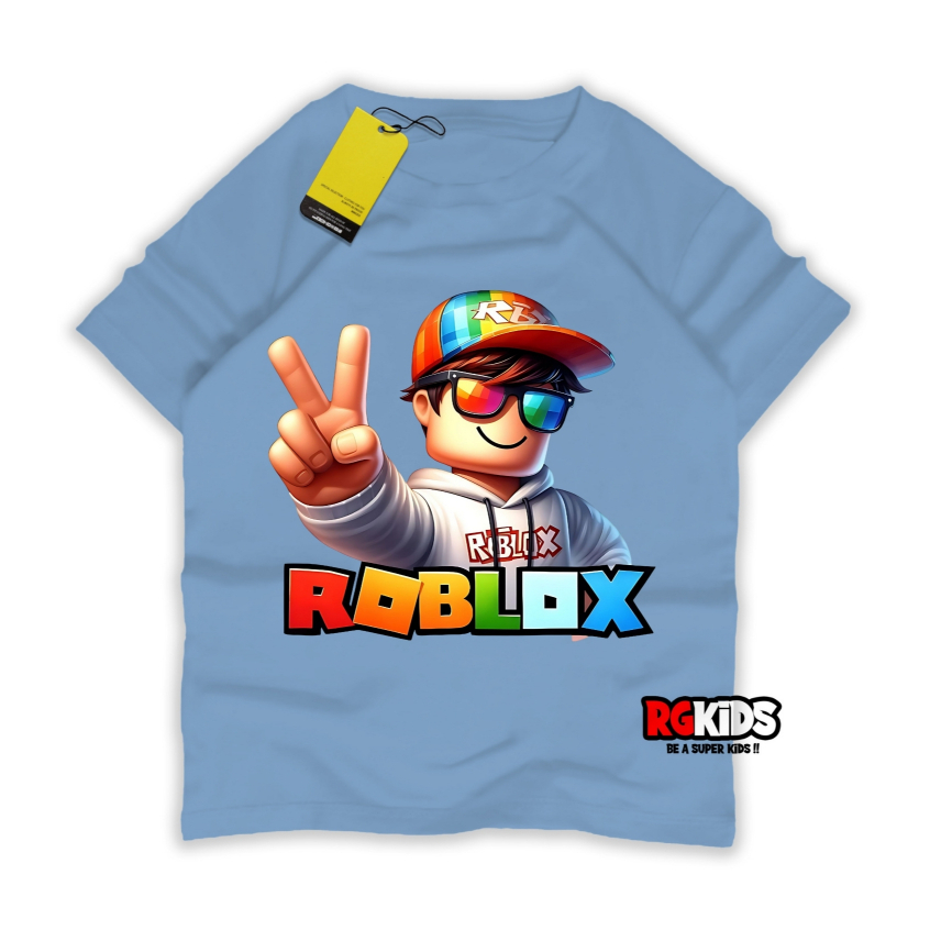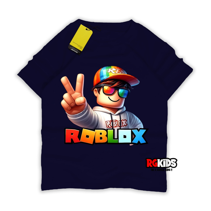 RGkids Kaos Anak Roblox Game Cowok Hitam Biru Putih Umur 4-12 tahun Print Digital