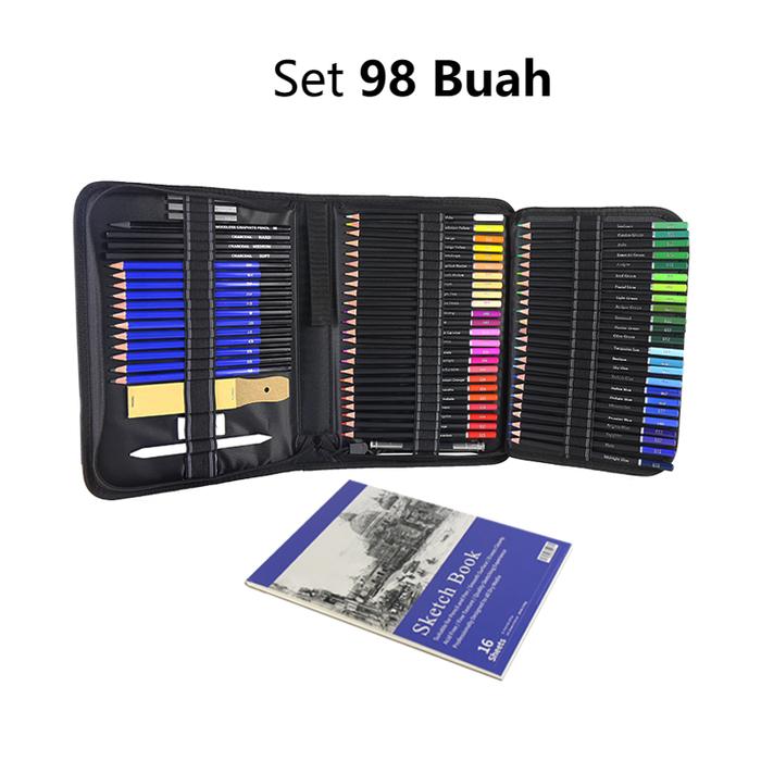 [Star]Set Alat Gambar 41/98 Buah Set Lukisan Pensil Warna Alat Gambar Pensil Berwarna Memberikan sebuah buku sketsa - 98