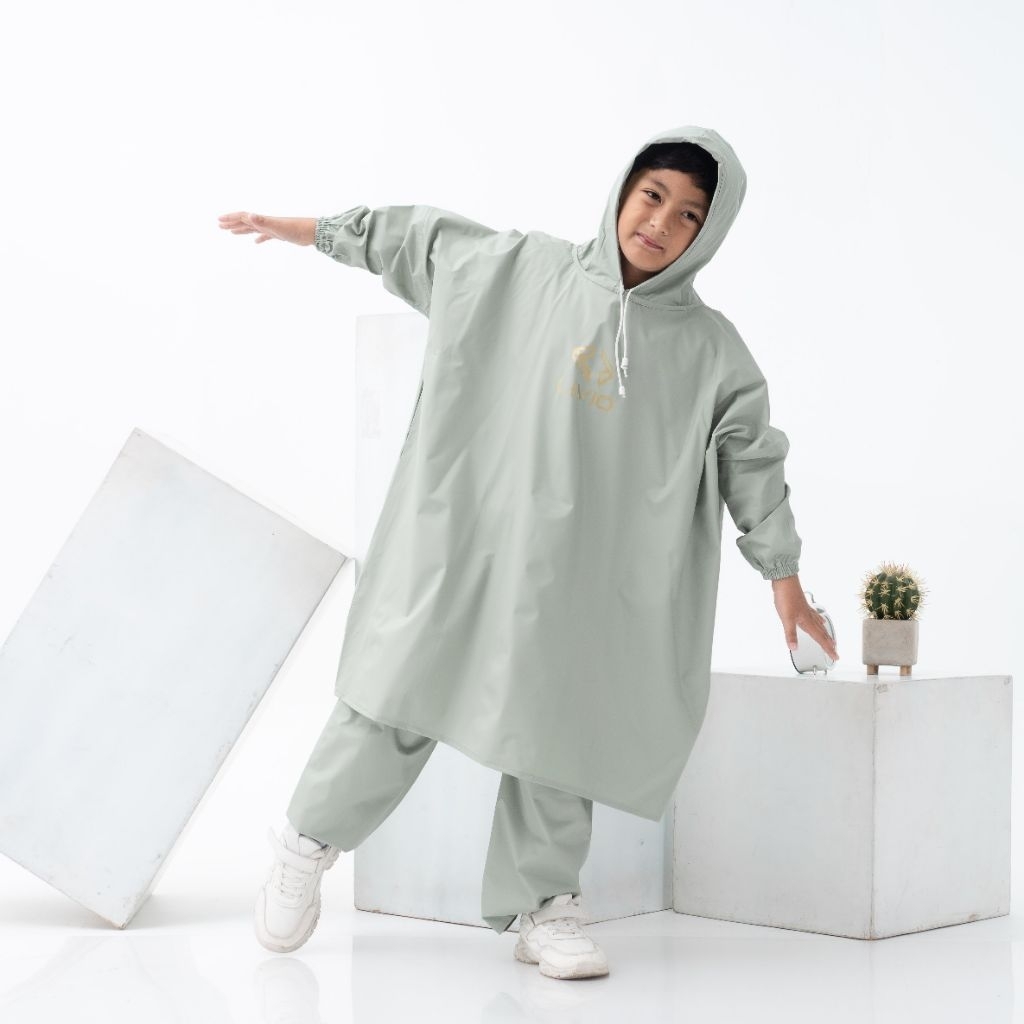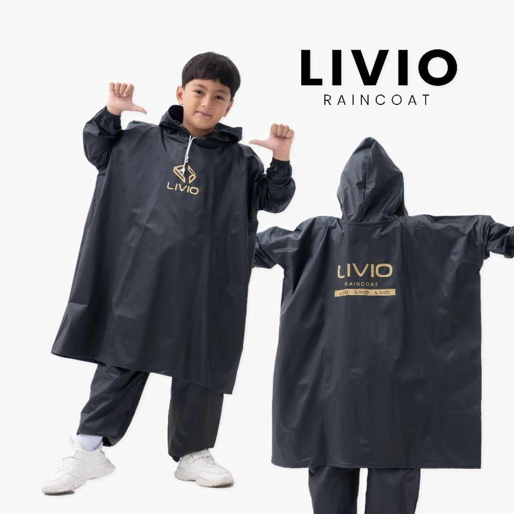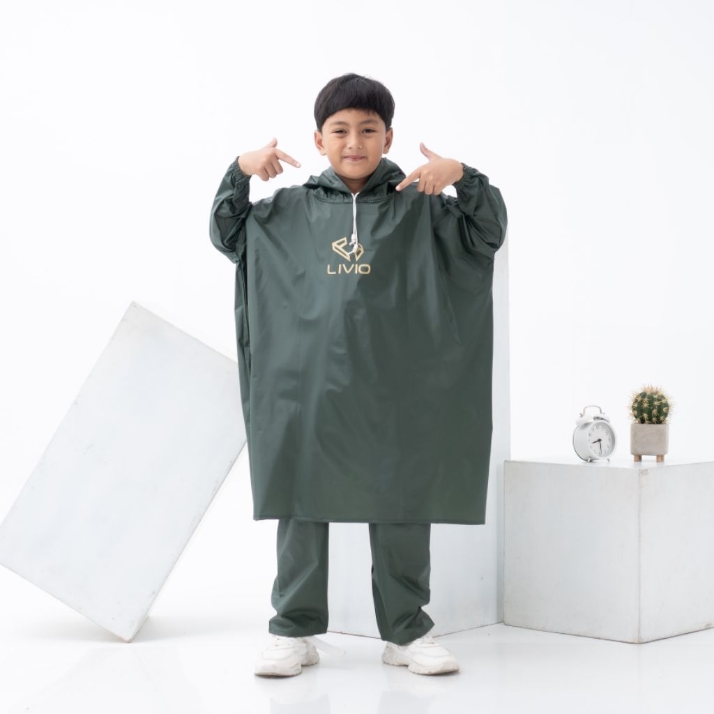 Jas Hujan Setelan Anak Livio Usia 7 Tahun - 13 Tahun Mantel Ponco + Celana Anak Bahan PVC 0,25 Tebal Elastis Anti Rembes