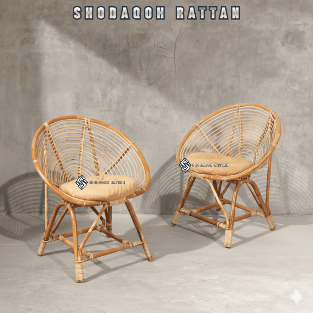 KURSI TERAS KERANG ROTAN / KURSI ROTAN TERAS BUKUR / KURSI TAMU ROTAN ASLI FINISHING