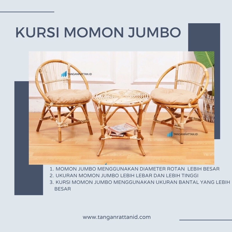 BIG SIZE - KURSI TERAS MOMON ROTAN UKURAN BESAR DAN MEJA 1 SET BANTAL / KURSI TERAS TAMU ROTAN ASLI FINISHING