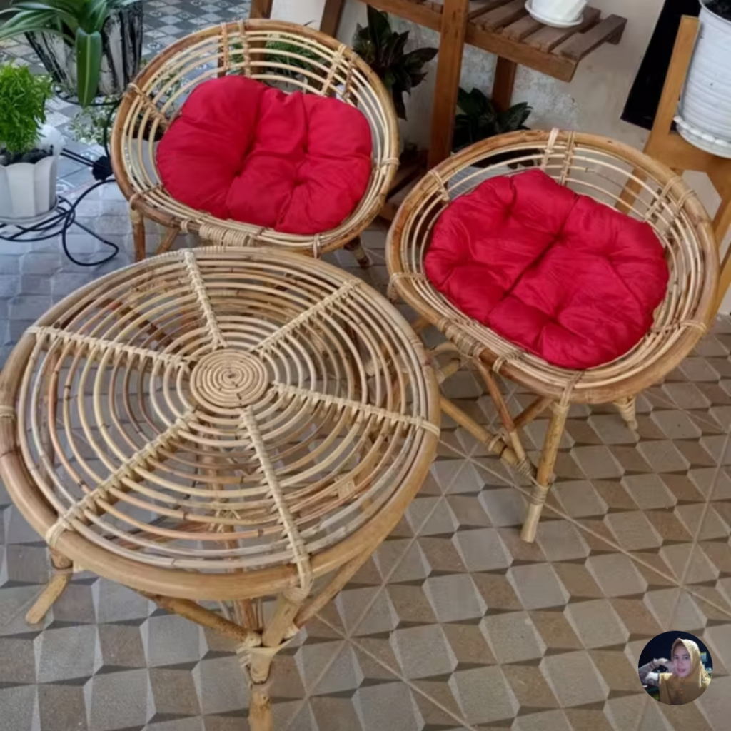 Kursi Teras Rotan Natural Motif Kerang FREE Bantal Duduk / Dudukan Santai Indoor door