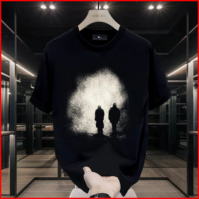 Motif Cetakan Trendy Siluet Figur Dengan Suasana Gelap Kaos Pria Terbaru 2025 Kaos Lengan Pendek Pria Kaos Pria Premium