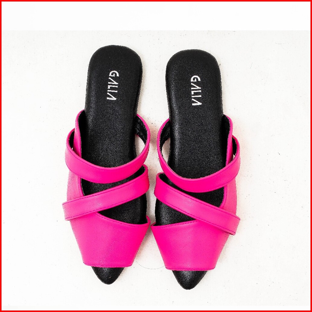 Galia Raline Sandal Wanita Mules Flat Slip On Hak Datar 1 Cm