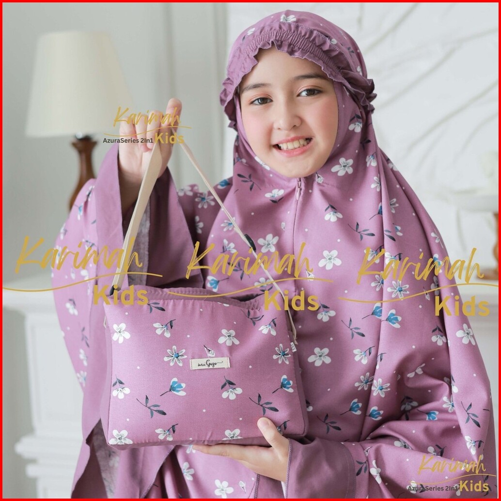 Karimahkids.id - Azura Series - Mukena Anak Tanggung 5 -14 Tahun Resleting 2in1 Motif Tas Ransel Premium