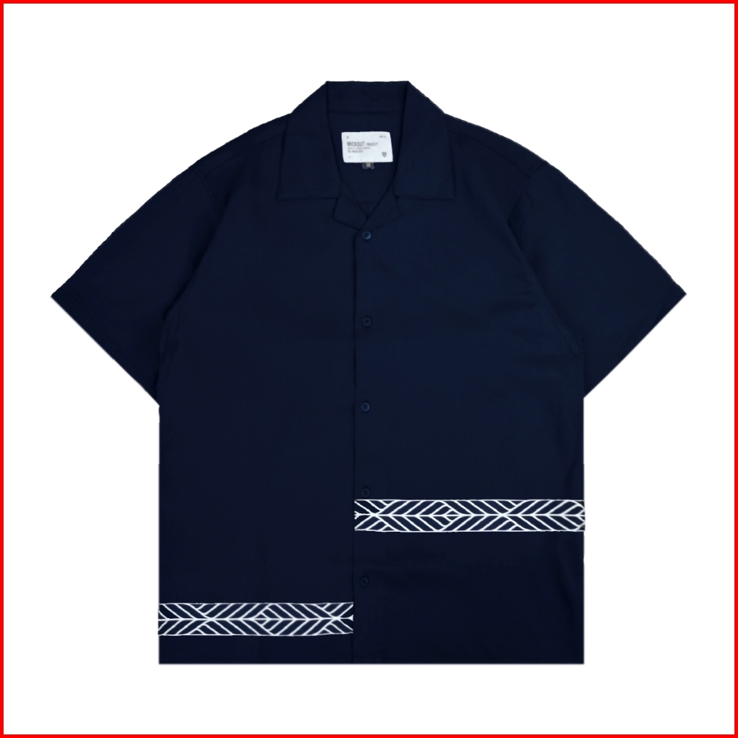 Mickout Cultural Casual Shirt - Kemeja Kasual Print Pria Katun Rayon Relaxed Fit Lengan Pendek - Navy