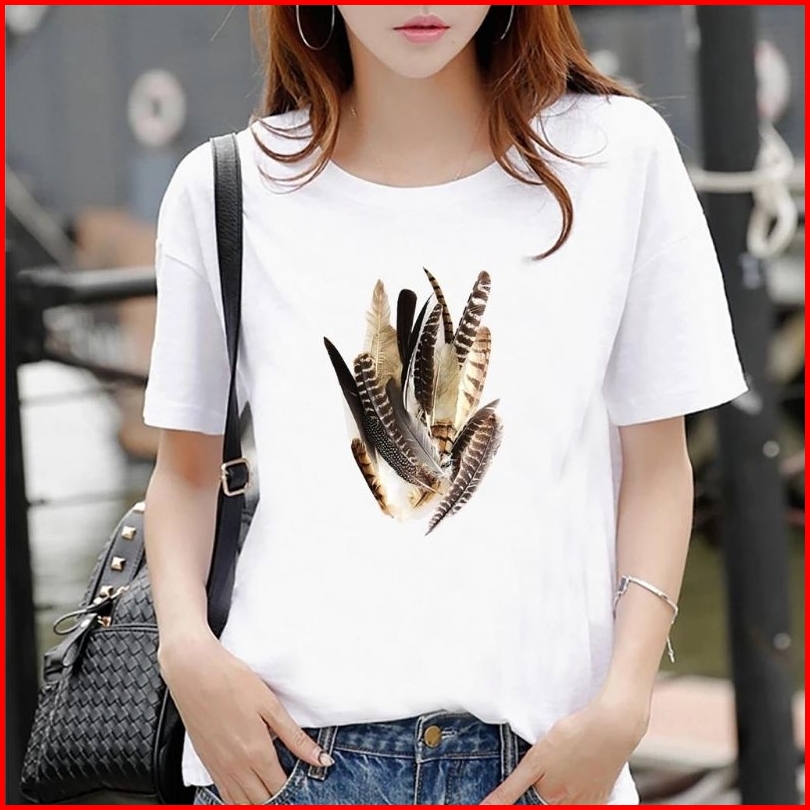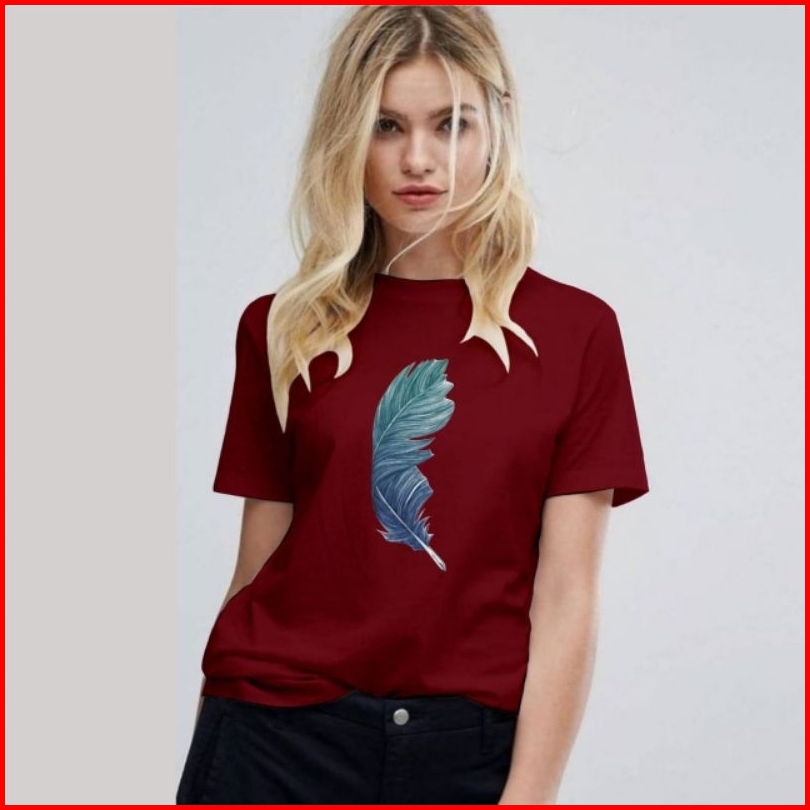 Kaos Wanita Oneck Leaf Bahan Combed 30s