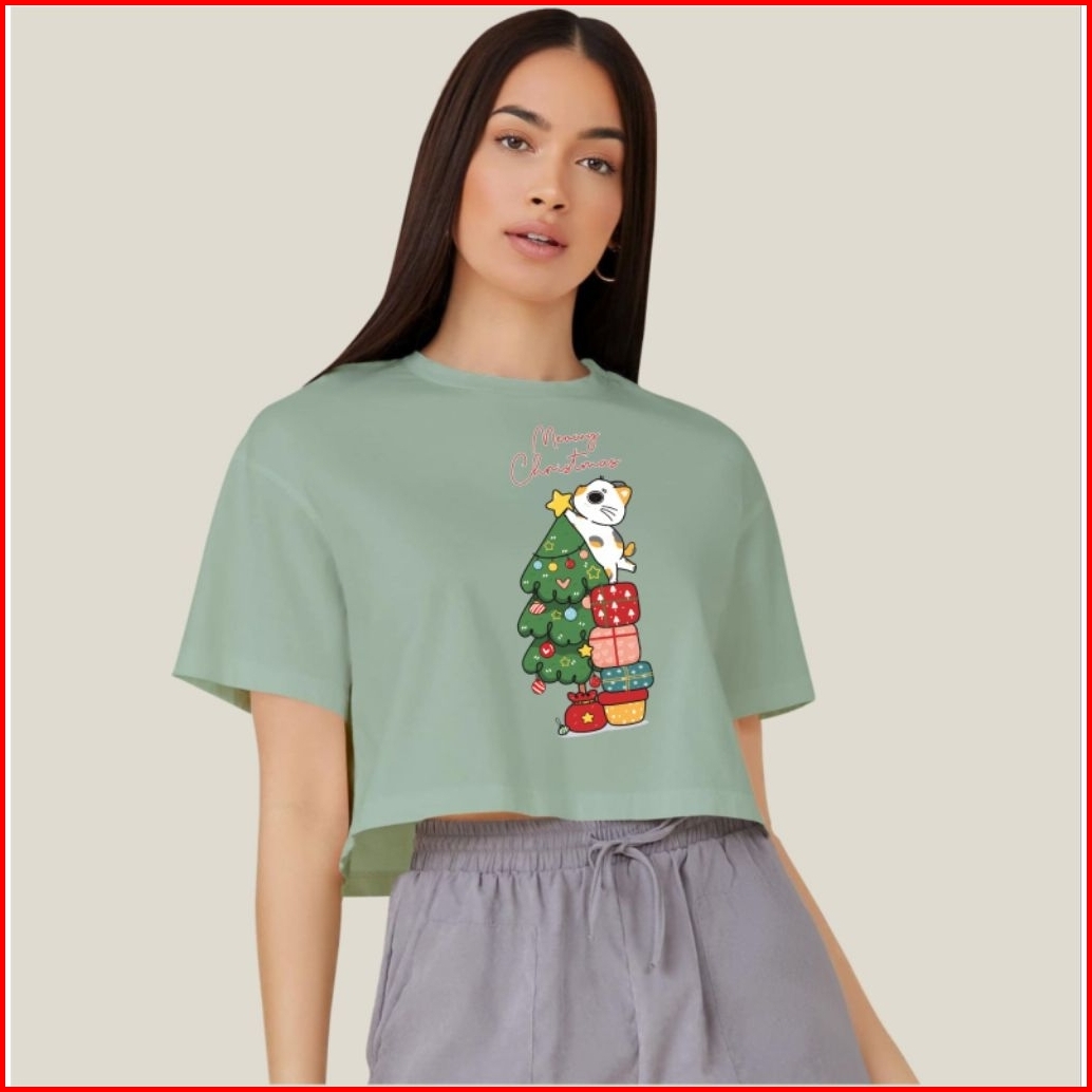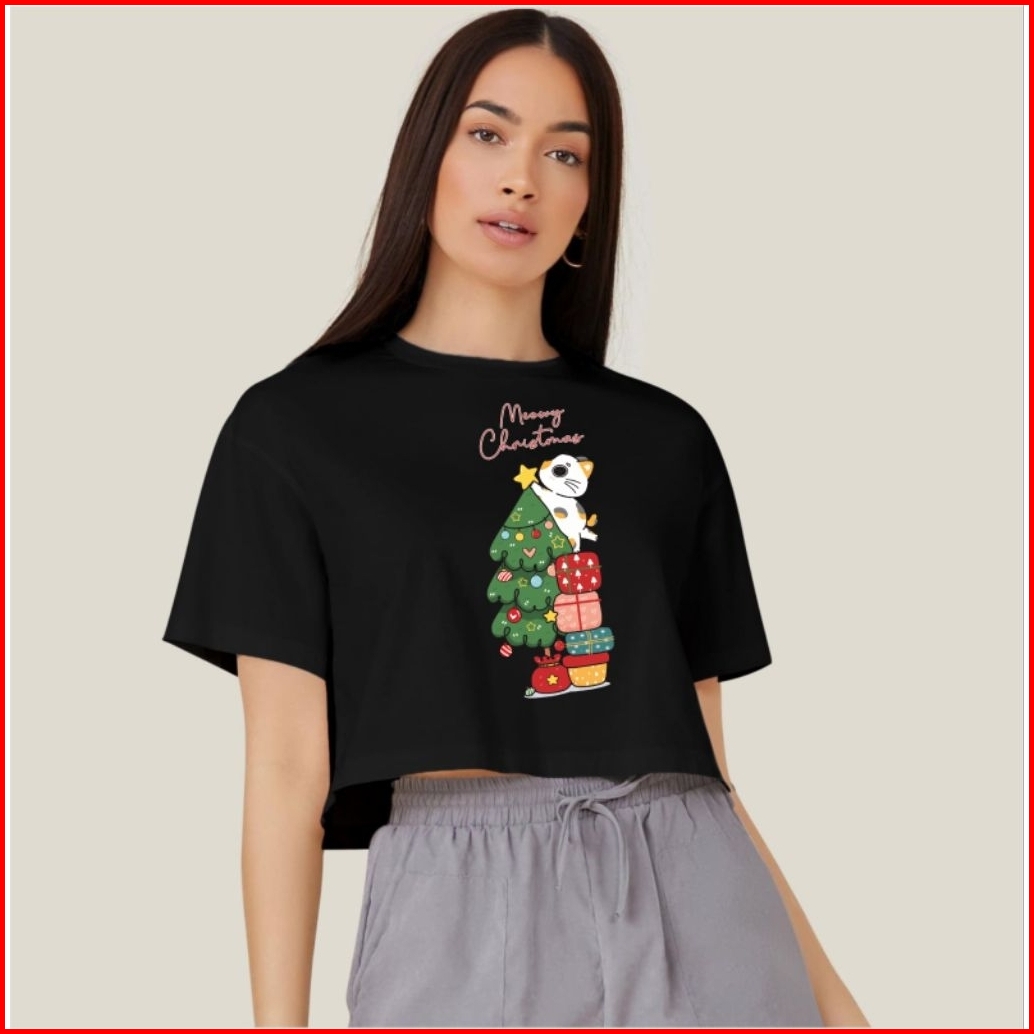 Kaos Crop Natal Motif A14 Atasan Wanita Cotton Combed