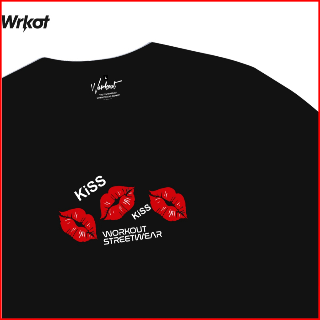 Workout Streetwear Baju Kaos T-shirt Original Distro Basic Kiss Love Pakaian Pria Dan Wanita