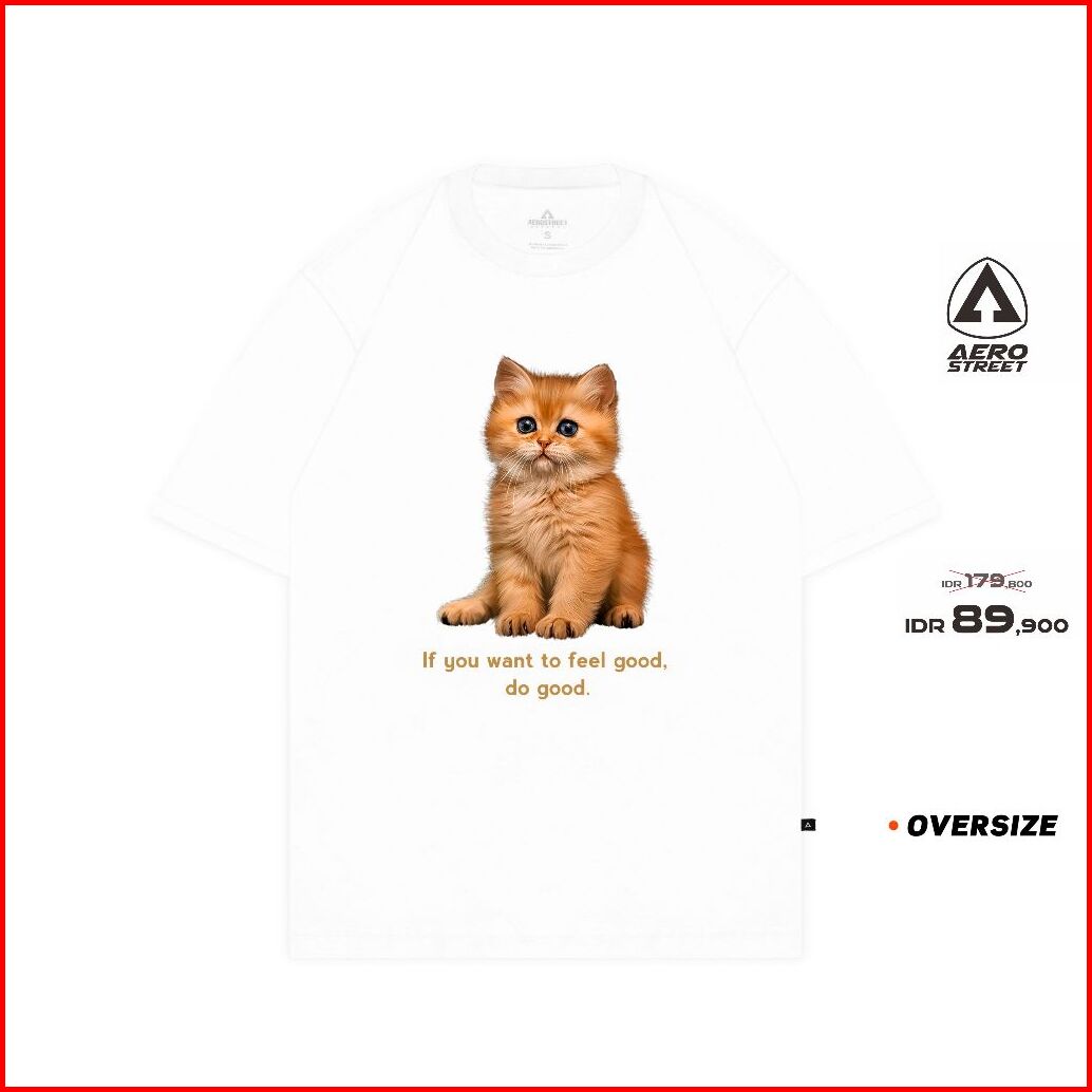 Aerostreet T Shirt Oversize Cute Cat Putih Kaos T-shirt Fbdaa