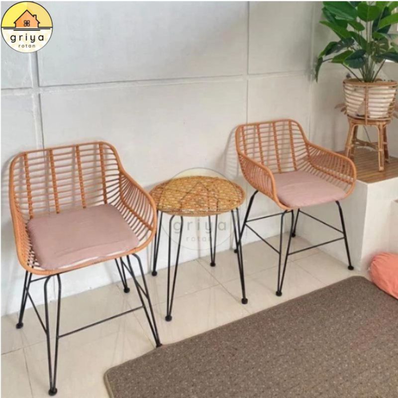 Set Kursi Teras Rotan Minimalis Rangka Besi Ergonomis