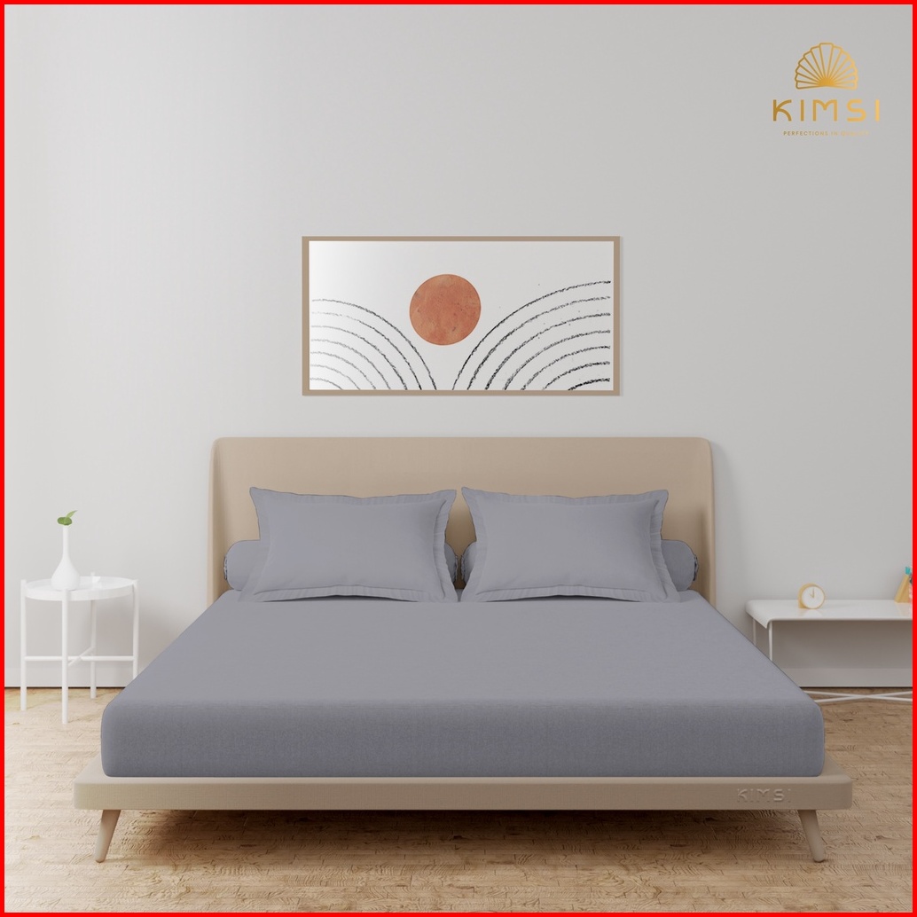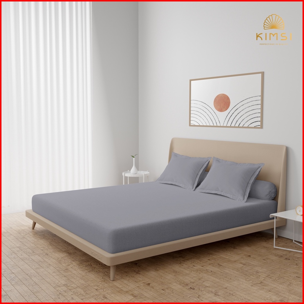 Sprei Set Katun Disperse Polos Not Bedcover Kimsi Ukuran 180x200x30 Seprei Cotton Premium Light Grey