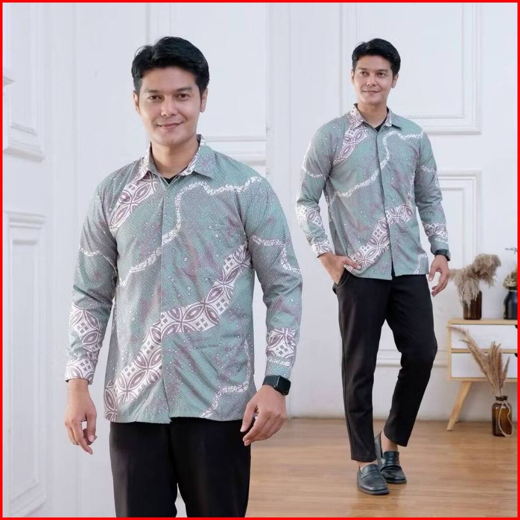 Baju Batik Pria Dewasa Slimfit - Kemeja Batik Cowok Lengan Panjang Mewah Modern