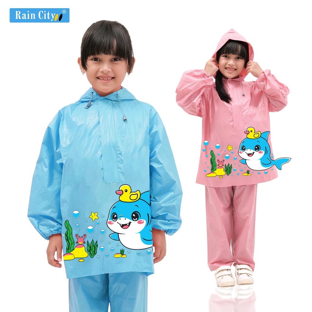 RAIN CITY Jas Hujan Setelan Anak Motif Karakter Lucu Baby Shark - 79003