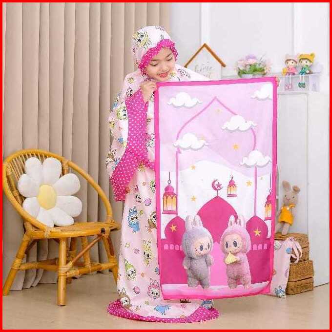 Mukena Motif Labubu Katun Premium Mukena Anak Usia 3 4 5 6 7 8 9 10 11 12 Tahun