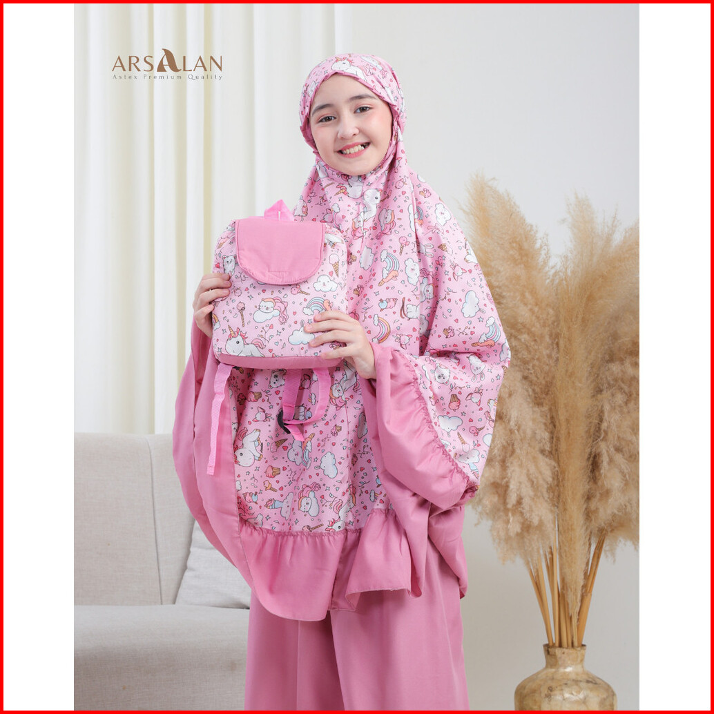 Arsalan - Mukena Anak Tas Ransel Karakter Unicorn Rayon Kombinasi Katun Mikro Usia 2 - 12 Tahun
