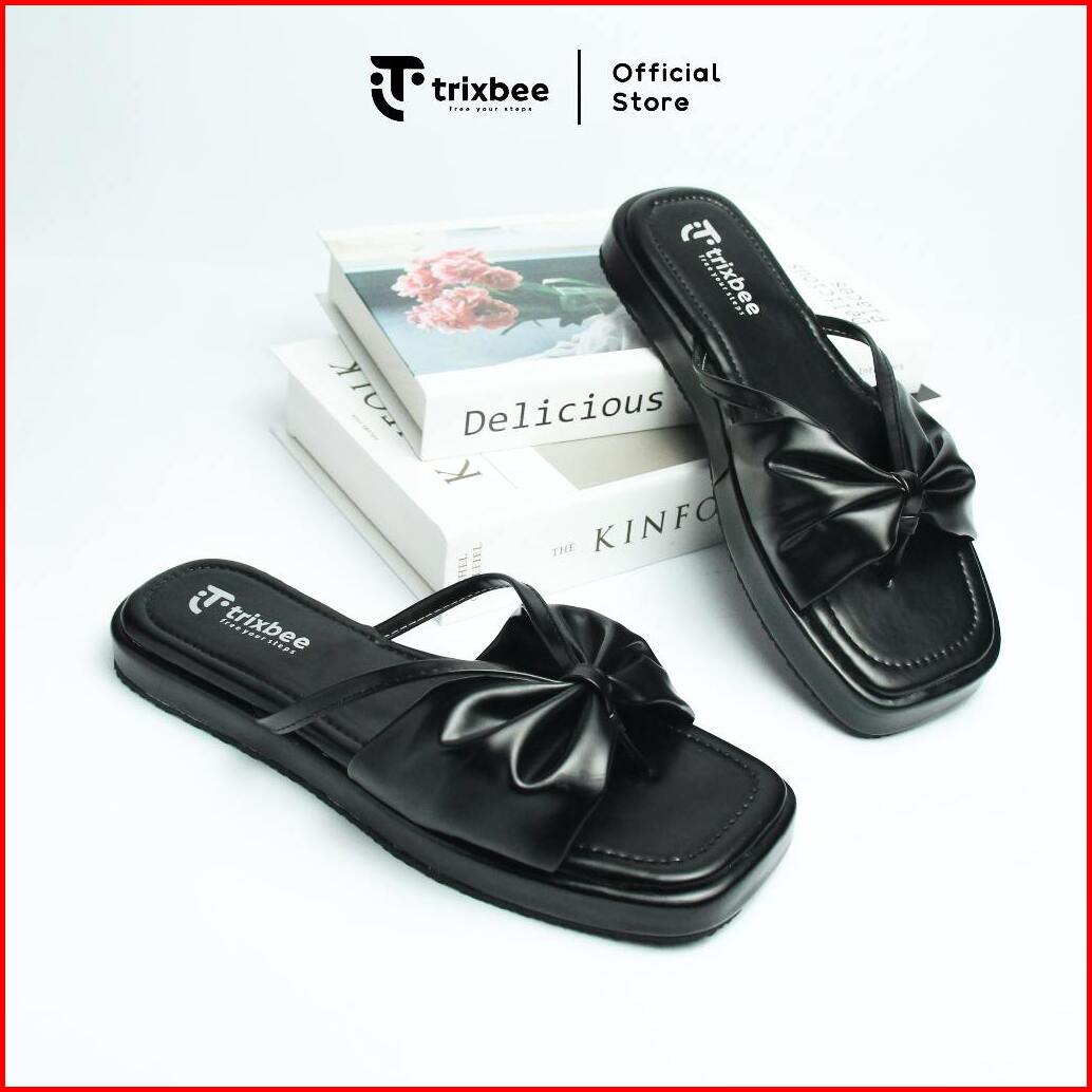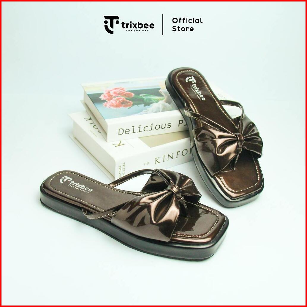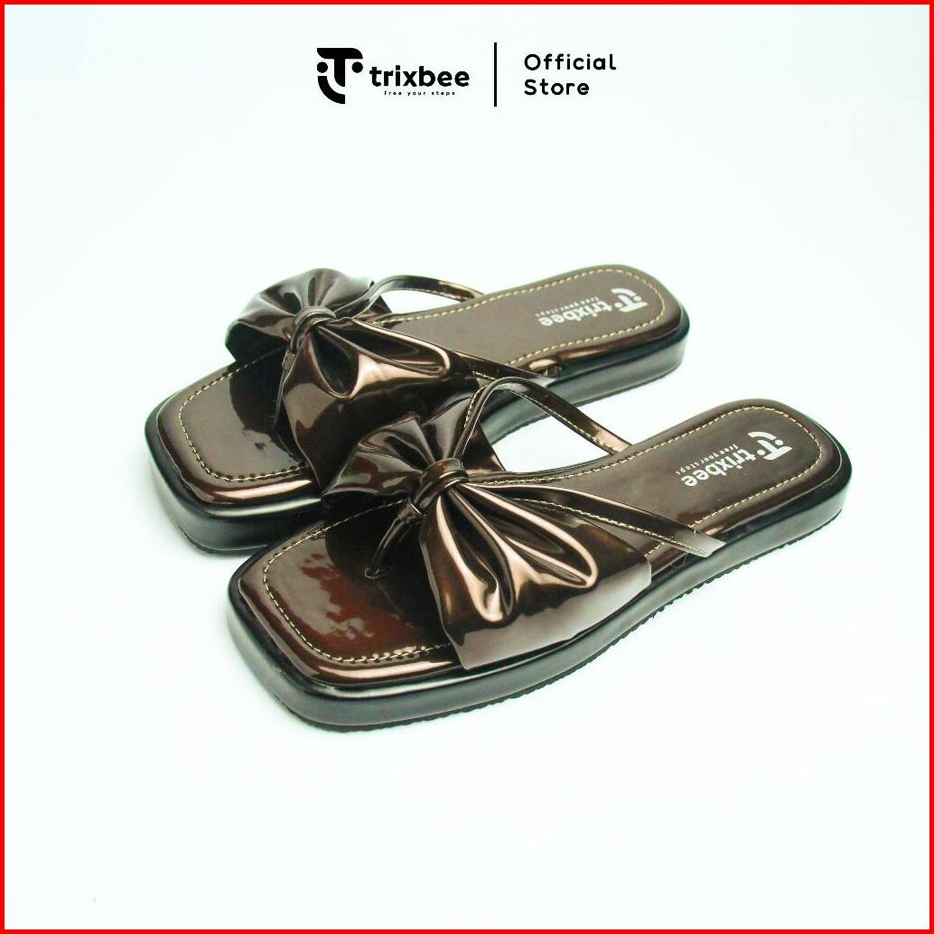 Trixbee Big Size 37-44 Sandal Wanita Flat Sol Karet Teplek Sandal Cewek Warna Mahogany