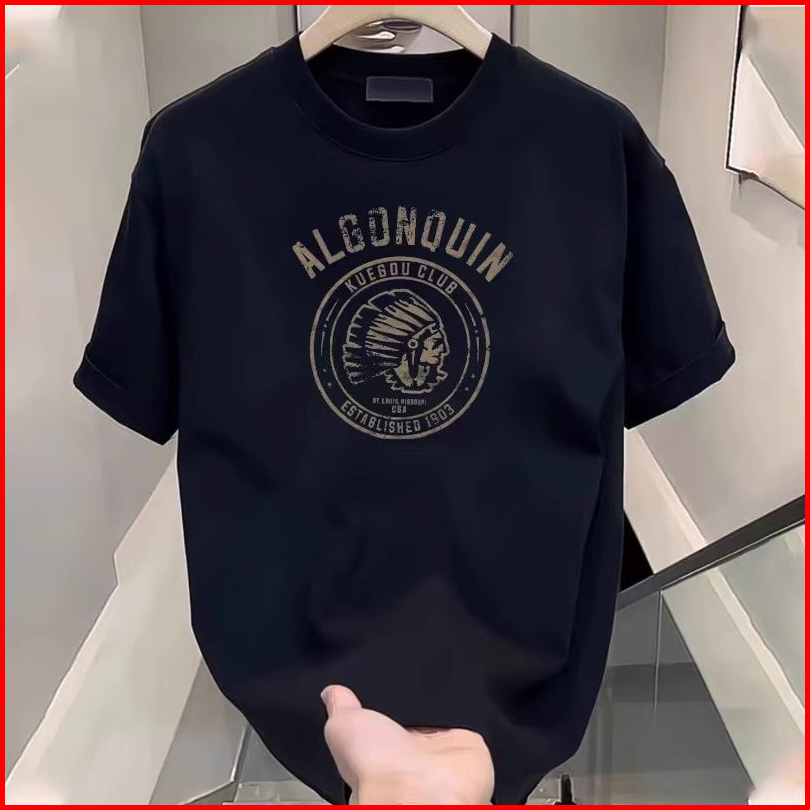 Pakaian Pria Kualitas Tinggi Kaos Pria Dengan Cetakan Kepala Algonquin Gaya Santai 100 Katun Potongan Luas Gratis Ongkir