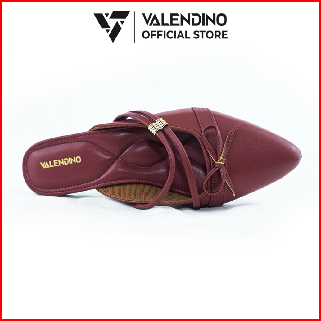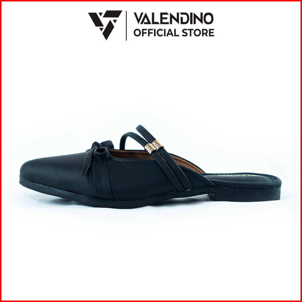 Valendino Sandal Flat Mules Wanita Pita Hitam Cream Merah Maroon Elegan Sepatu Flat Slip On Kekinian Nyaman Untuk Kerja
